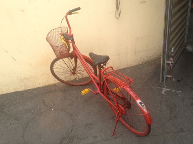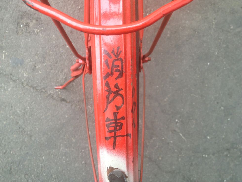 素人が ただ赤く塗ったチャリなのに、「 消防車 」って書いてありました\(^o^)/