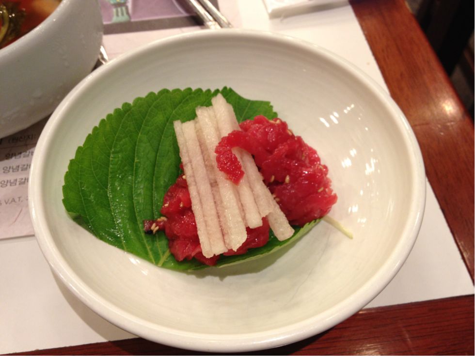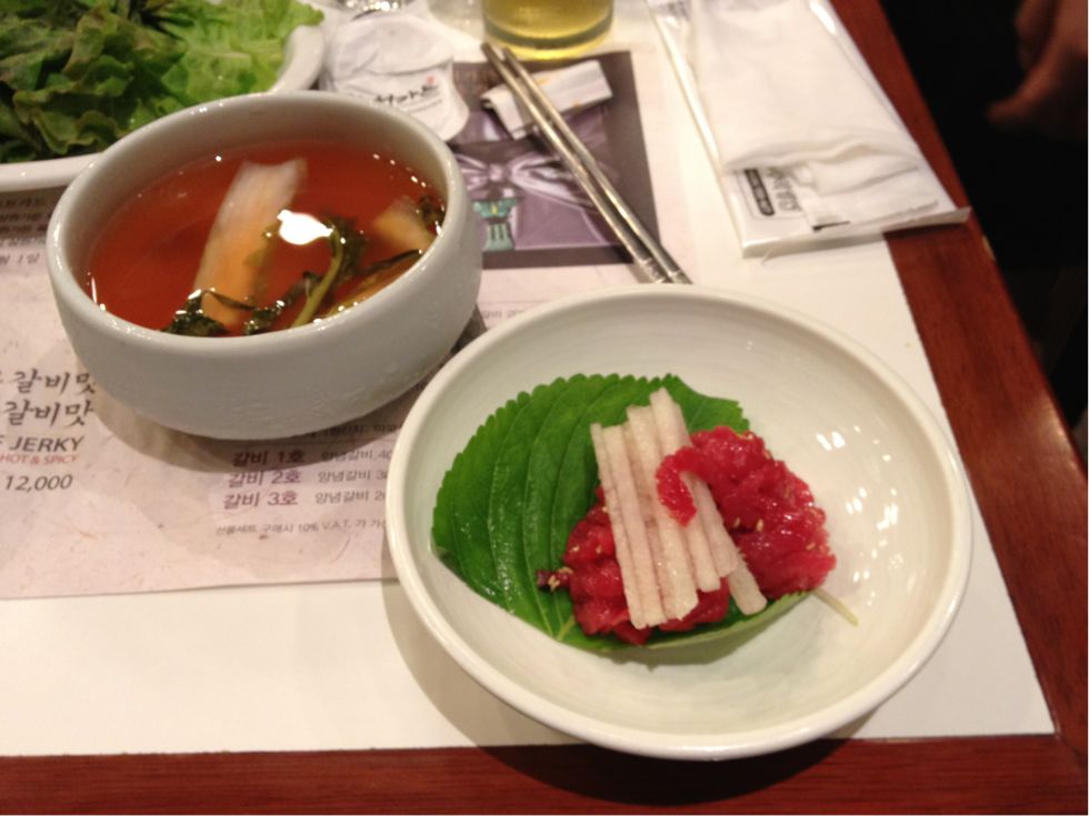 ユッケだ〜〜!!! + 冷スープ ・・・うますぎ。。。
