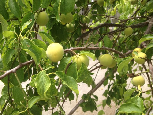 大祭の準備で土曜日の朝から神社へ向いお参りの後、美味しい汐入の空気をすいながら、樹々を眺めていたら、元気よく実が育ってあたので、iPhoneでパチクリと…。