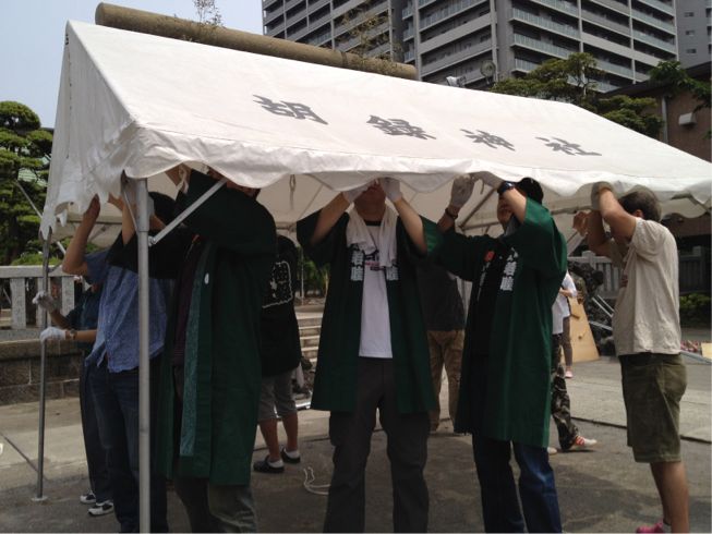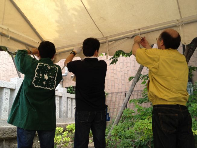 氏子の皆さんに、ご案内の準備をしたり 準備の後、本当に疲れちゃったり 子供達に配布の お菓子を詰めちゃったり テント張ったり、 結構、手作りなんです。 (祭りの前日)明日は雨模様。太陽の回りに虹が、、、降水確立70%。 でも、神様はいるんです!! 当日は、曇り のち 晴れすぎ〜〜〜 皆さん本当に お疲れさまでした〜〜〜!! 次回は、6/24 鉢洗いで!! Yo〜 |